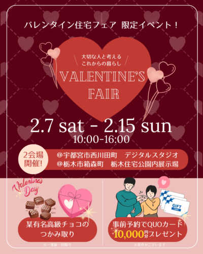 【宇都宮市/栃木市】バレンタインフェア|大切な人と考える、これからの暮らし【2月7日~15日開催】
