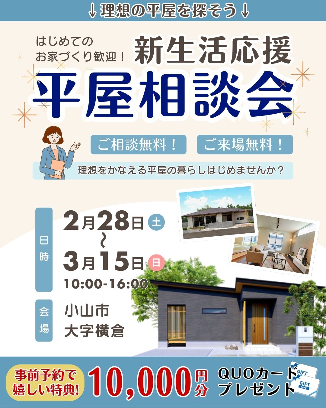 【小山市】新生活は“平屋”から。 はじめての家づくり相談フェア【2月28日~3月15日開催】