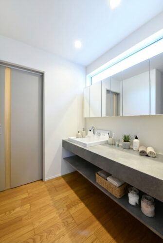収納も充実しており、朝の身支度も快適に行える機能的な空間です。