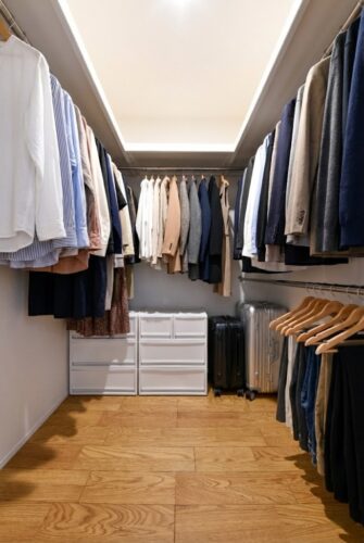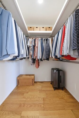 ウォークインクローゼットを備え、収納力と使いやすさを兼ね備えた空間です。