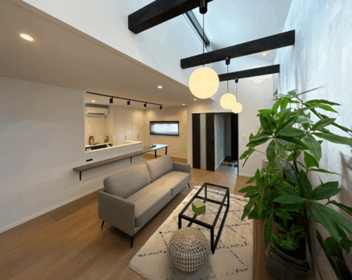 • リビングの吹き抜けが気持ち良いシンプルモダンな家