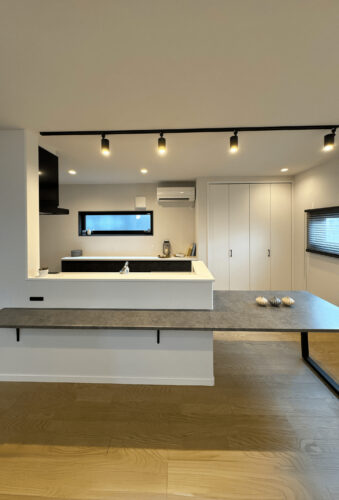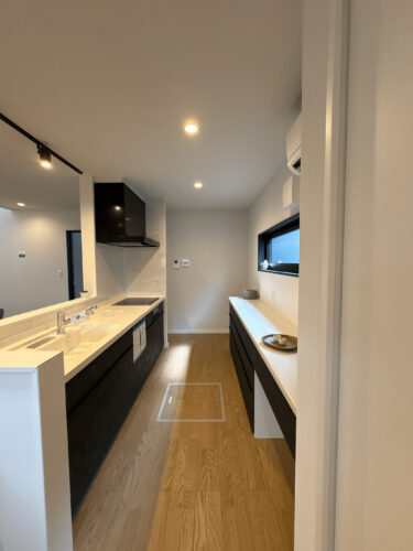 背面には広々としたカウンター収納を設け、家事動線もスムーズに。